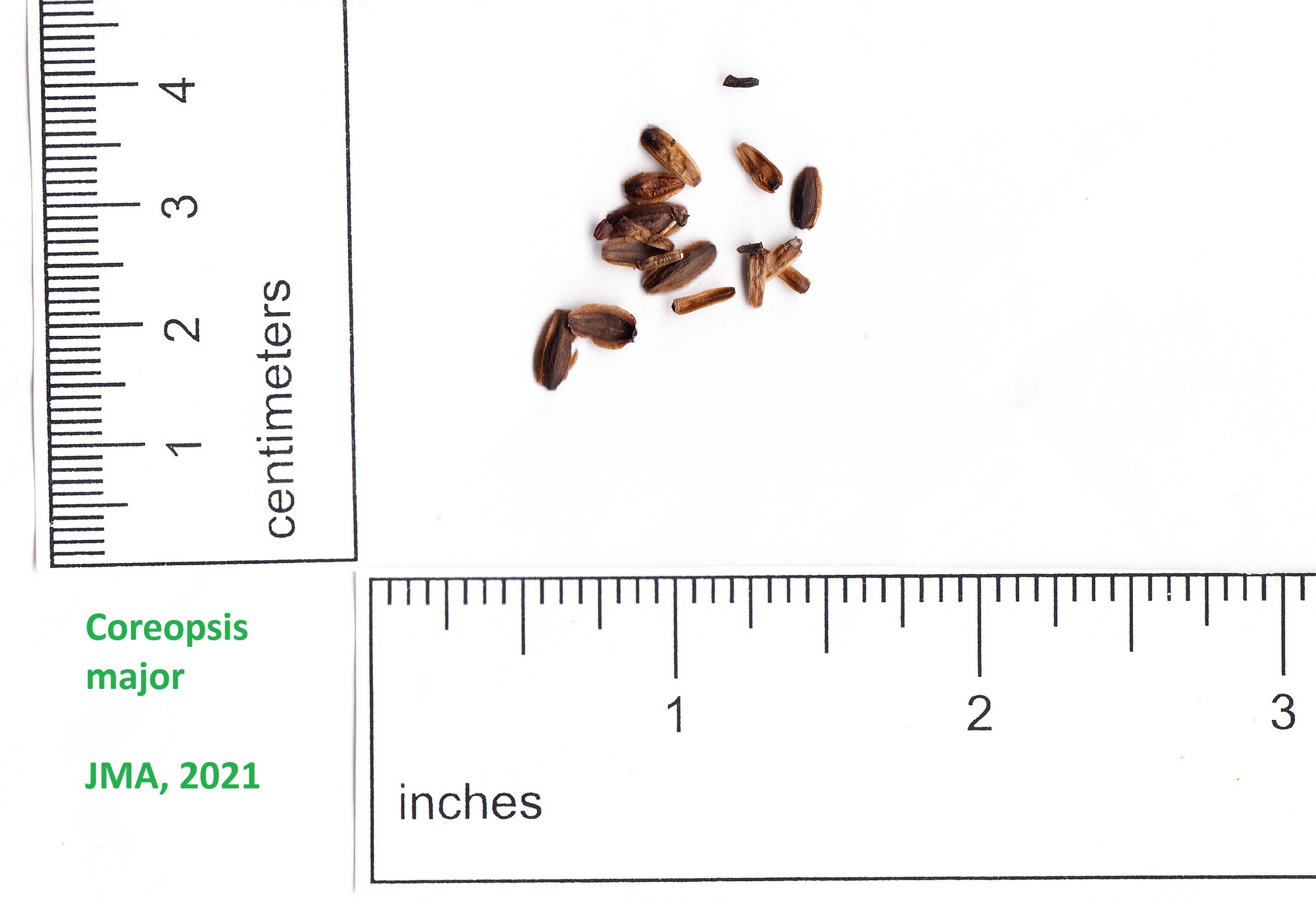 Coreopsis major, or Forest Tickseed, is native to the eastern third of the US. It is a perennial that grows in dry, open woodlands, disturbed areas and along roadsides. It blooms in late spring into mid summer into with golden yellow flowers.