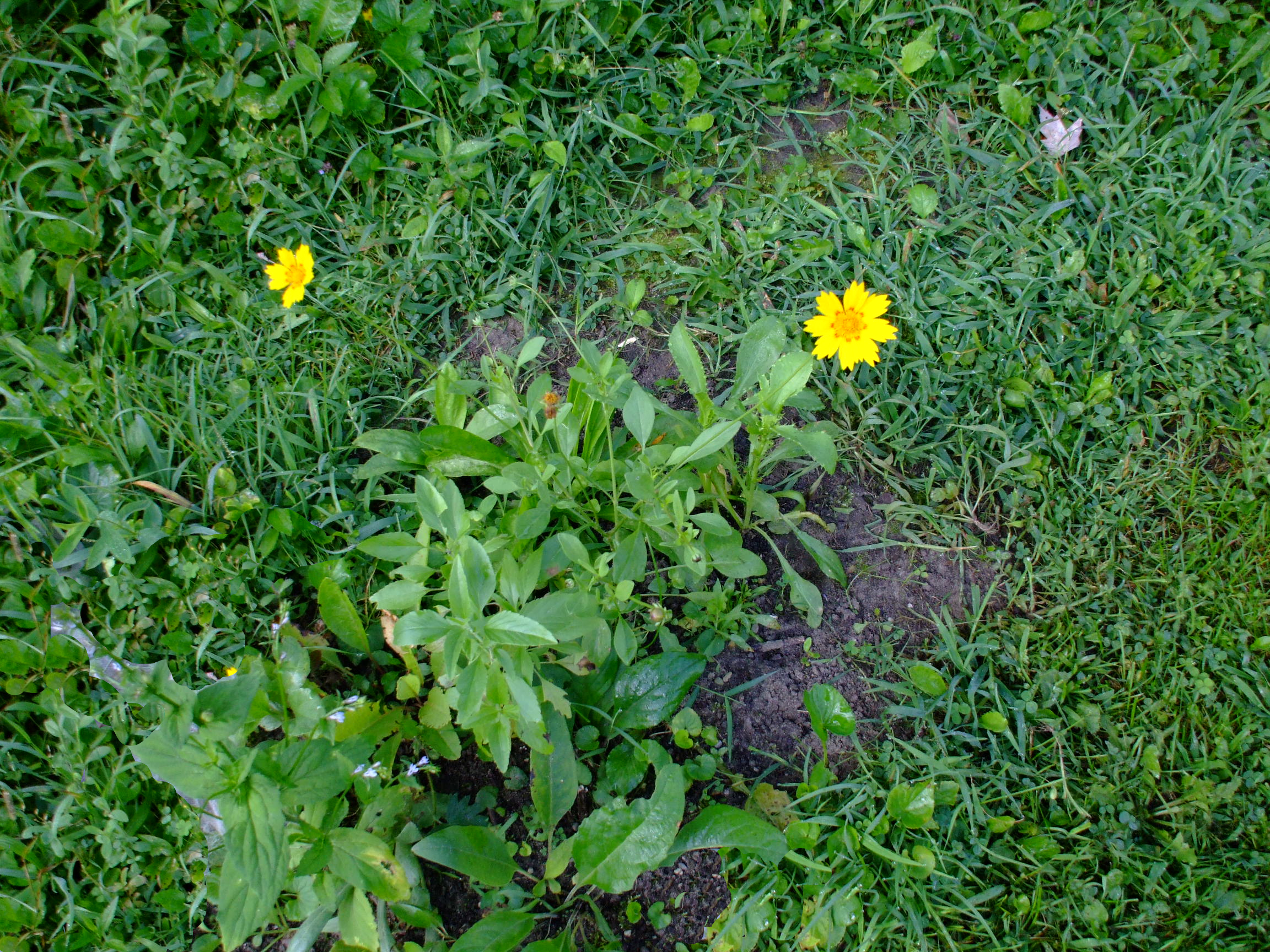 Coreopsis nuecensoides, or Rio Grande Tickseed, is native only to eastern and southeastern Texas. It is an annual or short-lived perennial that grows in open prairies and meadows. It blooms from early spring into early summer, with bright yellow flowers with a brown ring around the center.
