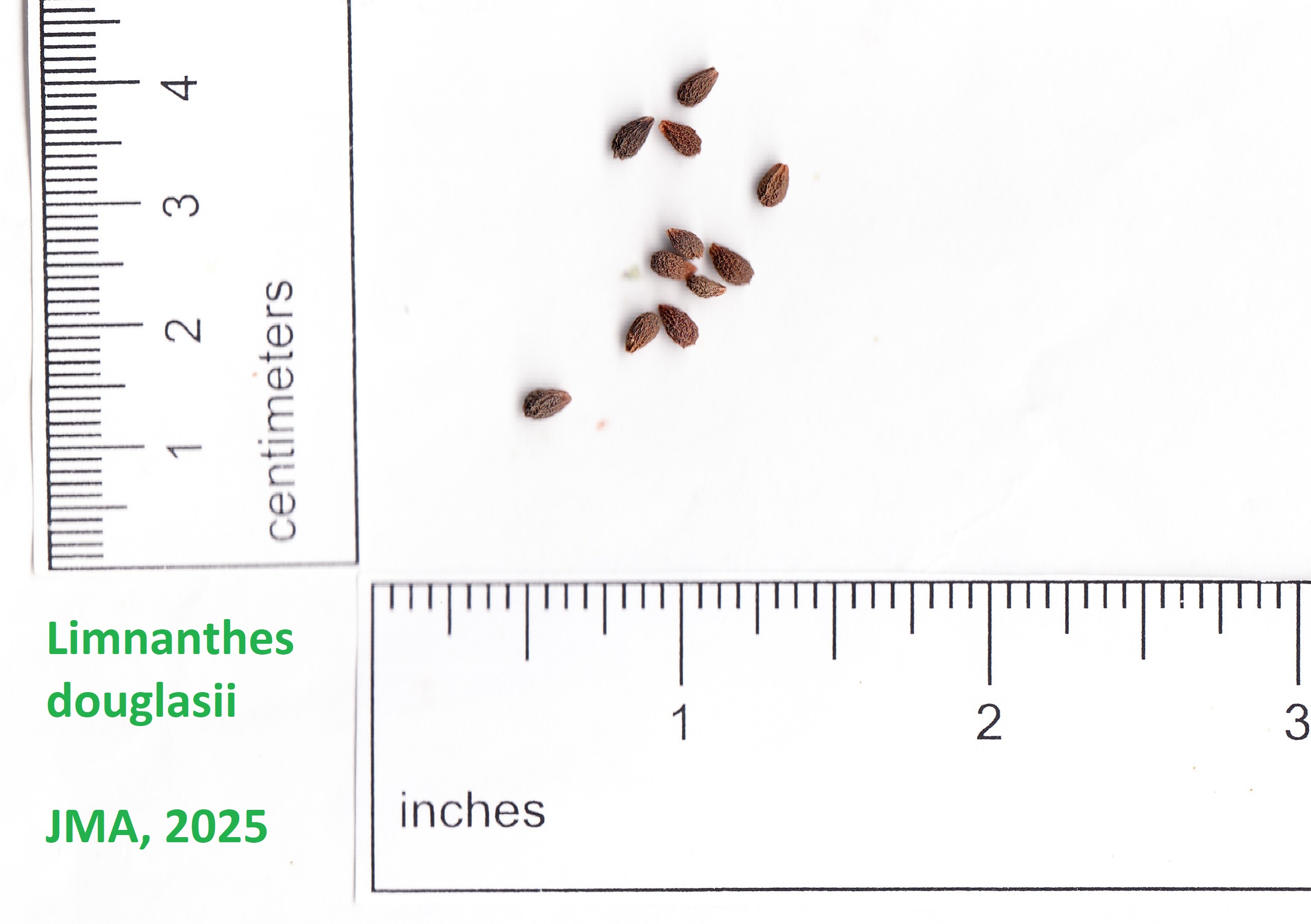 Limnanthes douglasii, or Poached Eggs, is native to California and Oregon, but it grown outside of those areas as an ornamental. It is an annual that grows in seasonally moist areas, like wet meadows and vernal pools. It blooms from early spring into mid to late summer, with striking yellow and white flowers.