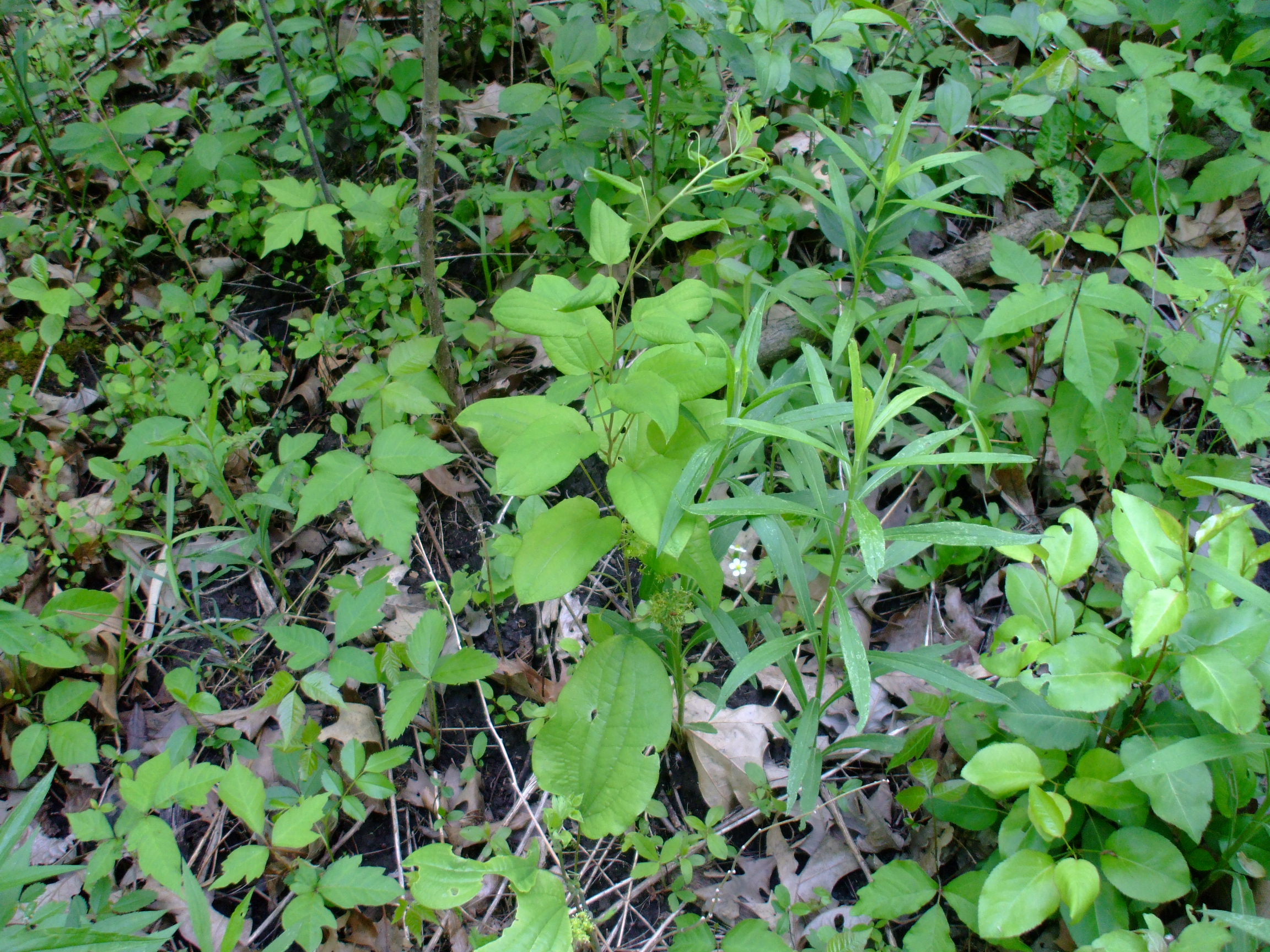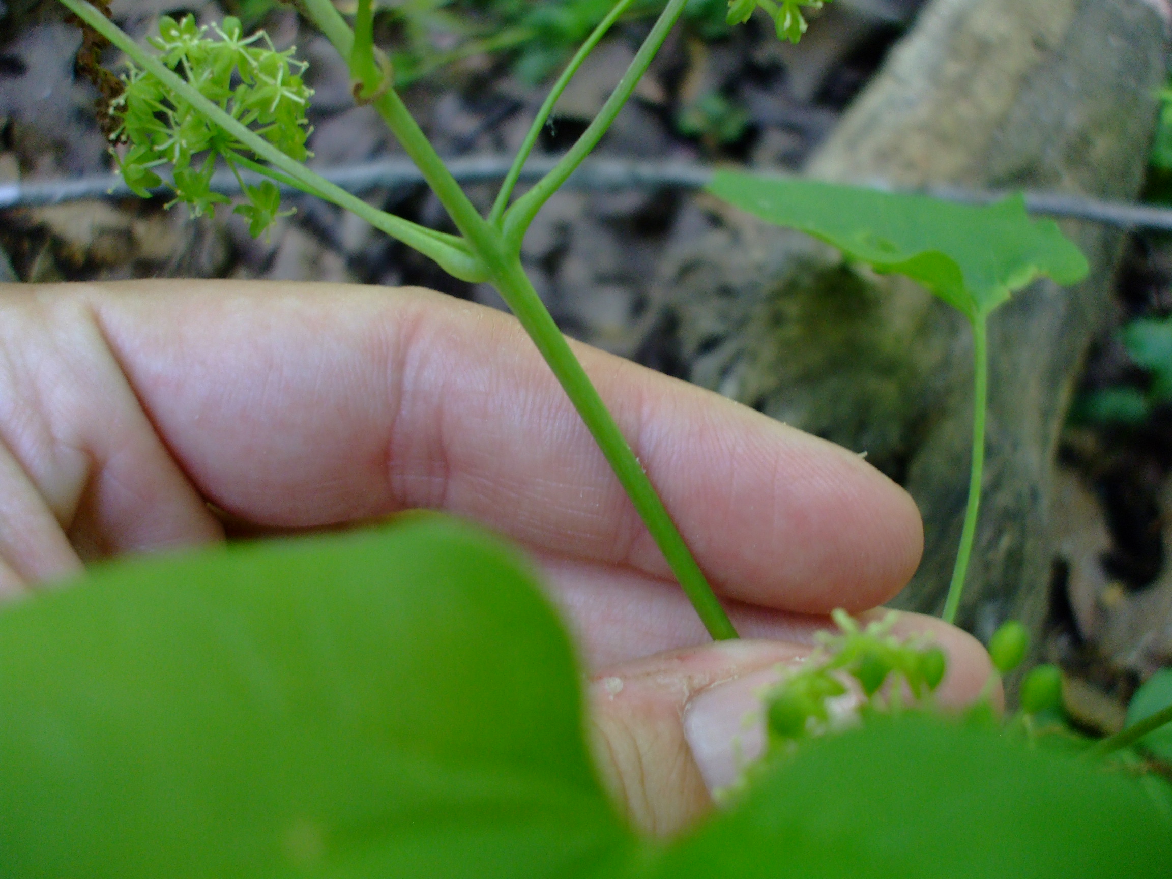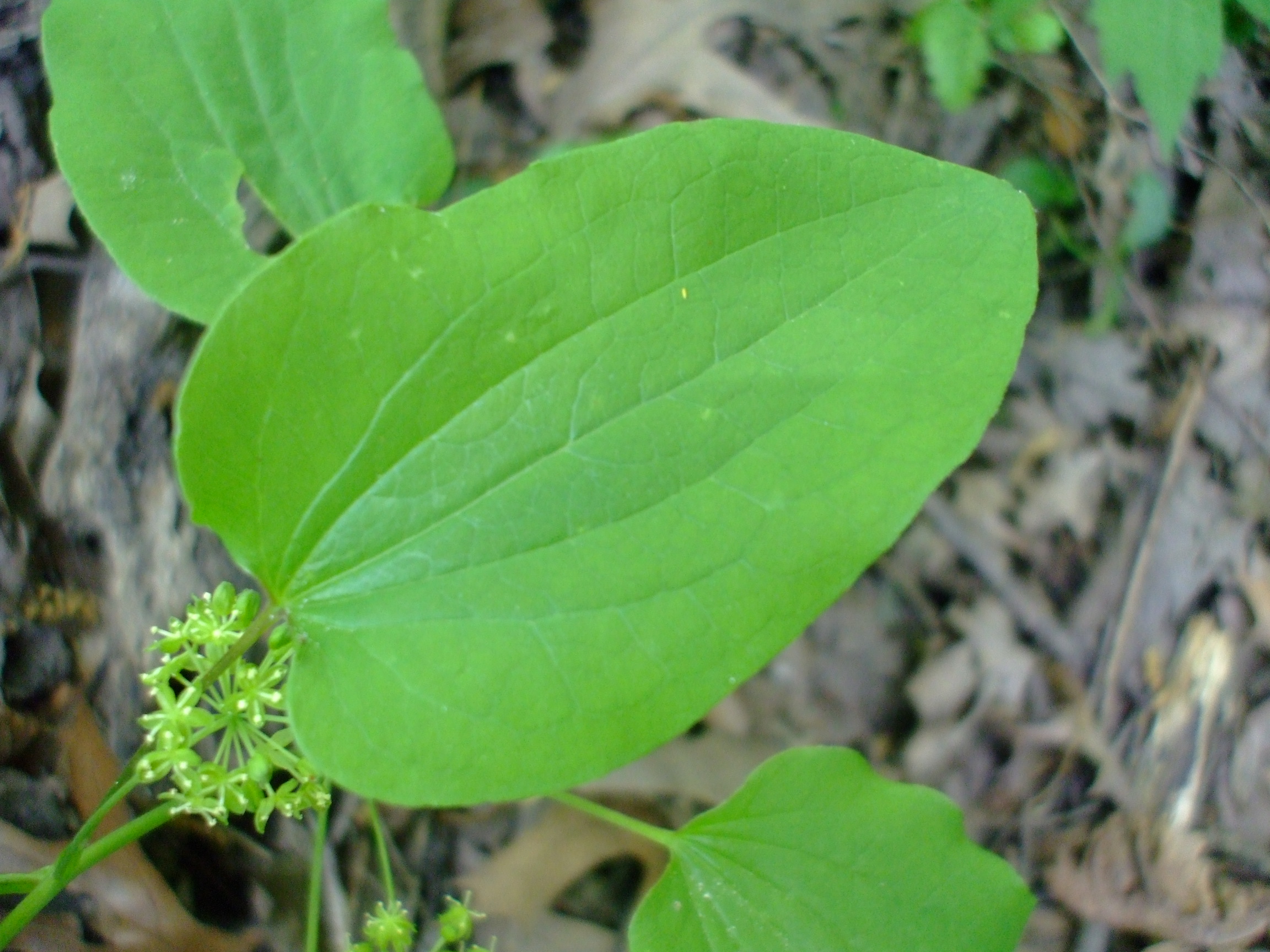 Smilax illinoensis, or Illinois Greenbrier, is native to the Great Lakes area and Central US, where it is considered rare in many places. It is a perennial that grows in partially shaded woods and along woodland edges and in thickets, open meadows and along streambanks. It blooms in early to mid spring into early summer with green-yellow flowers. Plants are either male or female, with slightly different flowers on each.